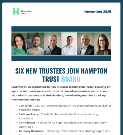 Please sign up to our newsletter to stay in touch with Hampton Trust’s work. We’ll keep you updated with all our latest news, views, developments, and opportunities to support us.